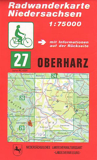 Bildet die Gegend östlich von Northeim, inklusive Westharz und Eichsfeld bis Duderstadt ab. Die Karte ist topografisch, enthält auch Steigungen, Höhenlinien und eine Kilometrierung an den Radfernwegen (R1, Harzrandweg).Eine Neuauflage, mit Begleitheft, ist 2003 erschienen , -> "Oberharz / unteres Eichsfeld"