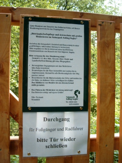 Wanderweg durch den Hutewald wieder freiNIENOVER. Das Hutewaldprojekt nahe des Schlosses Nienover rückt noch näher an die Bevölkerung der Solling-Region und die zahlreichen Besucher. Denn seit Sonntag besteht erstmals nach vier Jahren wieder die Möglichkeit, den traditionellen Wanderweg im Reiherbachtal und damit mitten durch das Hutewald-Gehege zu nutzen. Außerdem ist im ehemaligen Wirtschaftsgebäude der Försterei Nienover eine Info-Scheune eingerichtet, die ganztägig zum Schauen und Lesen einlädt. Sonntagmittag war offizielle Eröffnung des Weges und der Scheune. Professor Bernd Gerken vom Lehrgebiet Tierökologie der Fachhochschule Lippe und Höxter, die das Hutewaldprojekt wissenschaftlich begleitet, lobte die Bundesländer übergreifende Zusammenarbeit und betonte die internationale Resonanz auf das Projekt. Der Erfolg des Projekts lässt sich durch die Wiederkehr seltener Pflanzen und den Nachwuchs bei den Weidetieren erkennen, sagte Landrat Michael Wickmann. Thomas Reulecke, Leiter des Forstamtes Winnefeld, sprach von einem weiteren Mosaikstein, nicht nur für den Naturschutz, sondern auch für den Tourismus in der Region. Bodenfeldes Bürgermeister Hartmut Koch bezeichnete das Areal gar als Landratsruh. Es ist der Ort, wo der Landrat zur Ruhe kommt, so Koch mit leichtem Augenzwinkern. Kurt Hapke, Geschäftsführer des Naturparks Solling-Vogler, dankte allen Mitwirkenden am Projekt. Nach der Eröffnungszeremonie mit den Jagdhornbläsern der Uni Göttingen stand eine Wanderung durch den Hutewald mit Öffnung des Wanderweges auf dem Programm. Später gab es Steaks und Würstchen vom Heckrind sowie Führungen zu den Ausgrabungen der Stadtwüstung Nienover, dem Jagdschloss und im Hutewald. Außerdem nutzten die rund 100 Besucher die Gelegenheit die Info-Scheune zu inspizieren. Anschauliche Tafeln und kurze Texte informieren über das Projekt und den Naturpark, das Schloss Nienover, die Wüstung Winnefeld, die Glashütten am Lakenteich und die Stadtwüstung Nienover. (NO) Quelle: HNA vom 5.7.04 Der vom ADFC Northeim schon 2001 geäußerten Kritik an der Sperrung und dem Wunsch der Freigabe ist man damit endlich gefolgt.