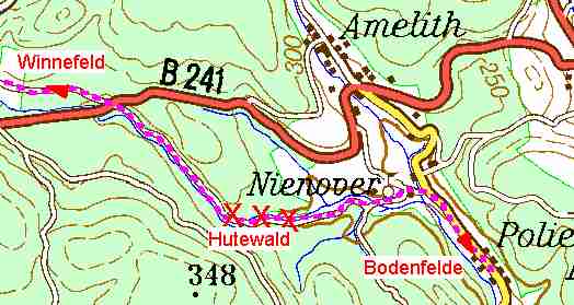 Um von Nienover dorthin zu gelangen, muß man einen Umweg von ca. 1 Std. zu Fuß machen. Motorisierte Wanderer haben da wenig Probleme, sie fahren einfach über die B241 zum oberen Wanderparkplatz. Aber Radwanderer, für die das Tal auch eine interessante Strecke von Bodenfelde nach Derental oder Neuhaus darstellte, sind gekniffen.